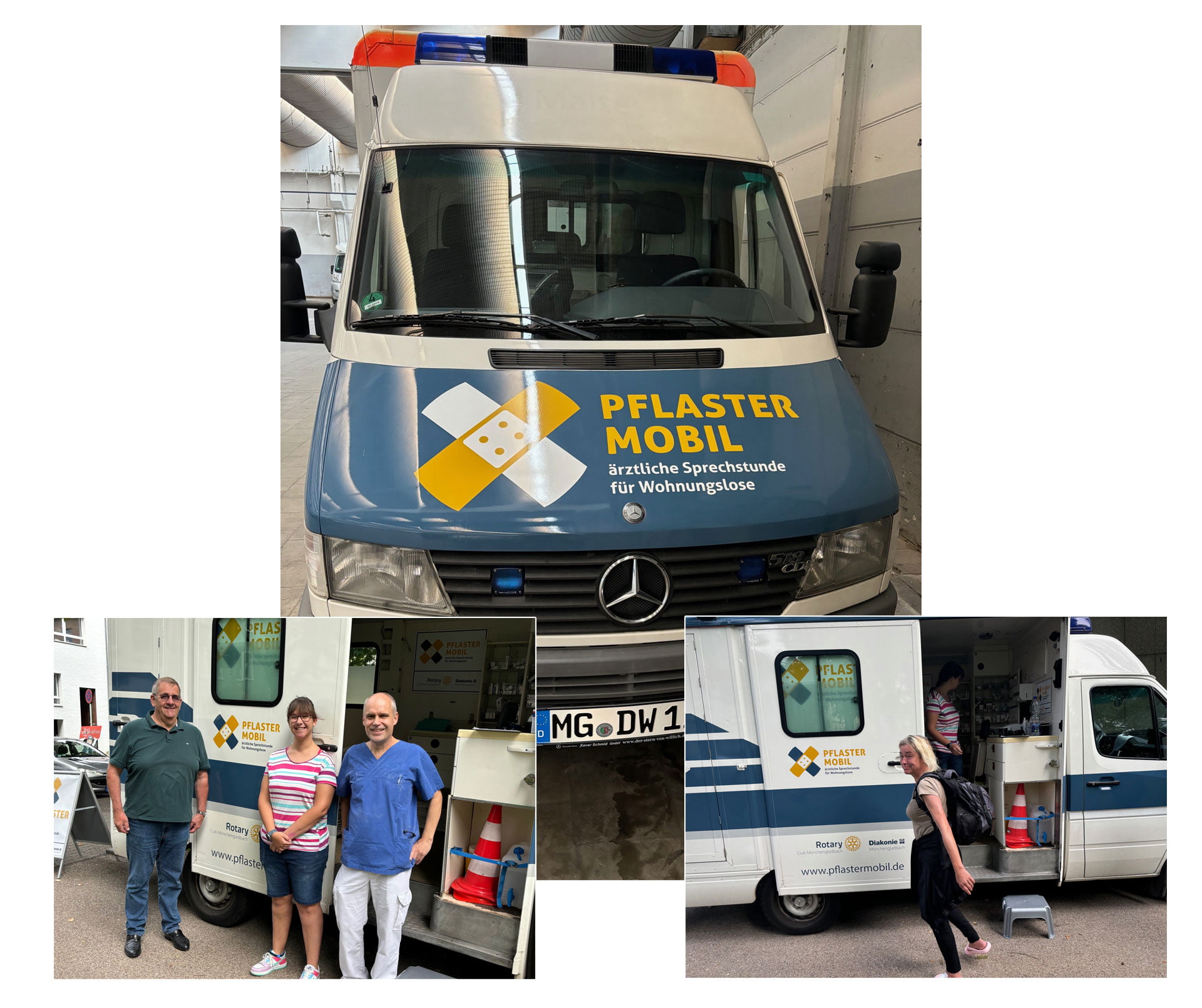 Das Projekt Pflastermobil des Rotary-Clubs Mönchengladbach bietet obdachlosen Menschen in der Stadt medizinische Hilfe an Brennpunkten vor Ort an. Das mobile Krankenzimmer wird von einem ehrenamtlichen Team besetzt und bietet eine medizinische Grundversorgung wie Wundversorgung und mehr. Die Initiative ist dringend notwendig, da wohnungslose Menschen oft gesundheitlichen Risiken ausgesetzt sind und Barrieren bei der medizinischen Versorgung erfahren. Dank großzügiger Spenden und der Unterstützung von Ärzten und Krankenpflegern ist es uns möglich, diese wichtige Arbeit zu leisten. Werden Sie Teil unseres Engagements für Menschen am Rande unserer Gesellschaft!
